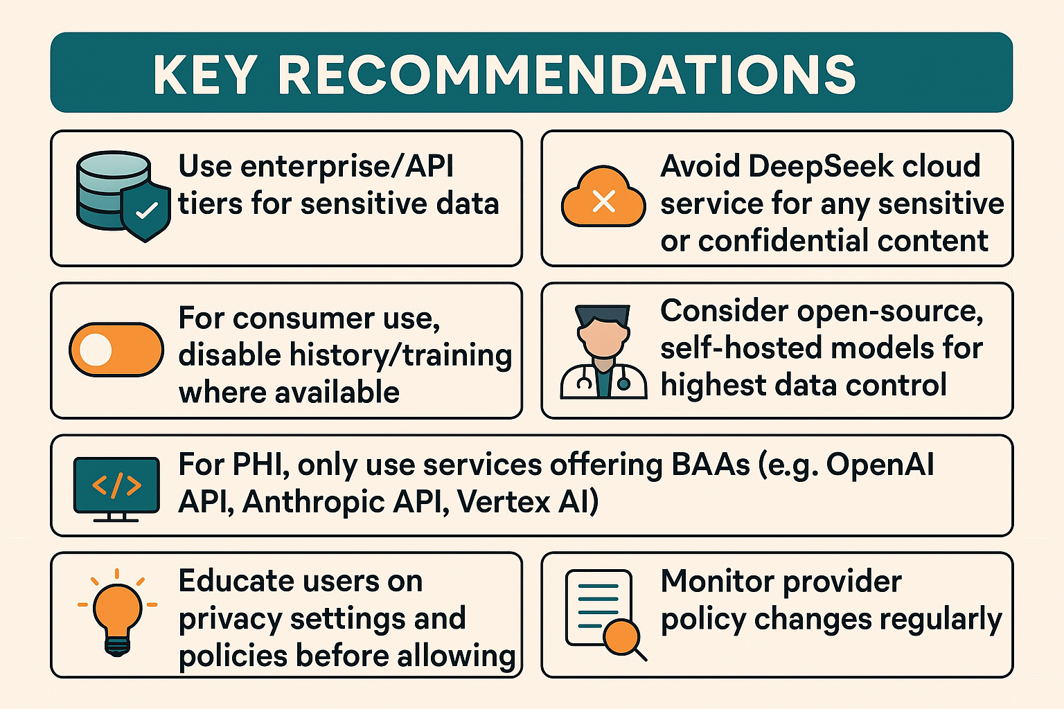 - Avoid DeepSeek cloud service for any sensitive or confidential content.